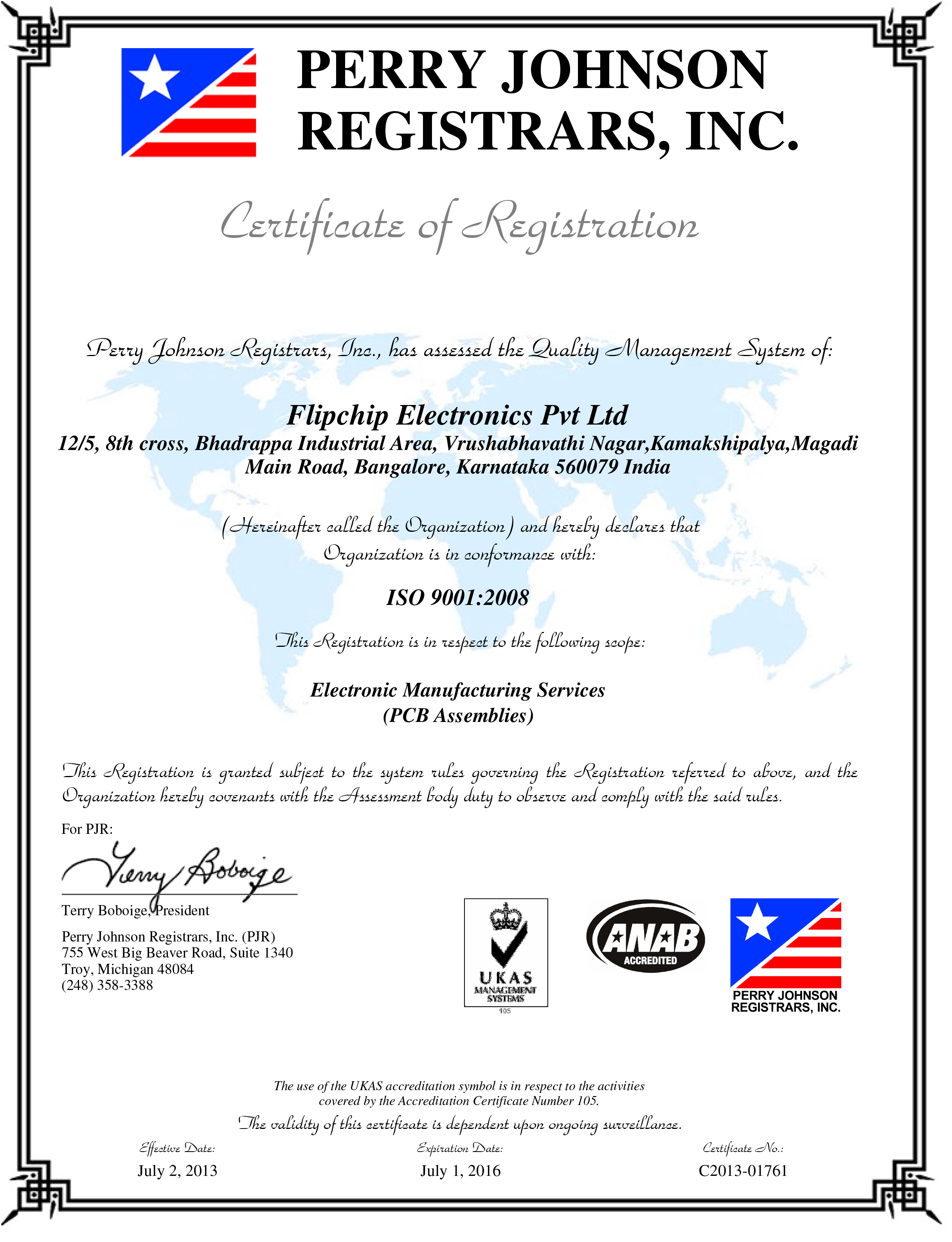 Flipchip is an ISO 9001-2008 Certified Company. Click below to view certifications.